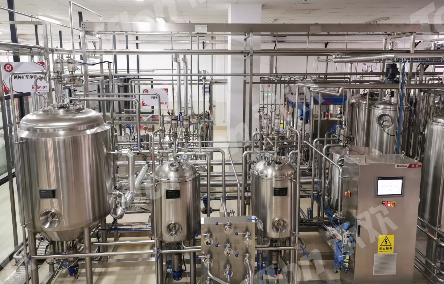 公司自主研發的大果粒多能套管式殺菌灌裝系統,應用于多條生產線上,并得到客戶的充分認可。貴州大學-東富龍承歡智能釀造孵化基地項目完美竣工,可滿足精釀啤酒、發酵型米酒、米香型白酒等多種酒飲的中性實驗。寧夏沃福百瑞枸杞飲料、山西秀容沙棘果汁、北京德大中藥提取、廣西天盛茶酒等多條生產線也在逐步安裝調試中。