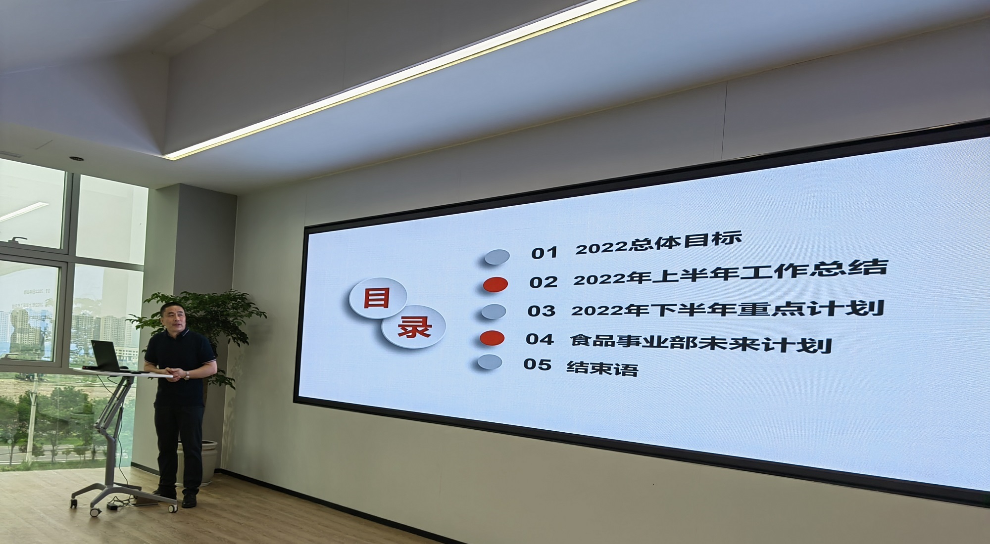 虞總在致辭中對食品工程事業部上半年度的銷售業績進行了全面的分析和總結,解剖了當前營銷狀況、市場形勢,以及食品行業產品的發展方向。虞總表示要始終保持競爭意識、對數字敏感、要有復盤能力及抗壓能力,增強技術創新與設備標準化,做好質量與成本管控;同時要充分利用平臺優勢,推動輝河的后道灌裝及智能包裝的設備研發,從而帶動食品生產線整體EPC項目的成單,打造東富龍食品整體品牌效應,推動國際、國內雙增長。總之我們要找準定位、抓住機遇、創新發展,朝著同一個目標一起奮斗!
