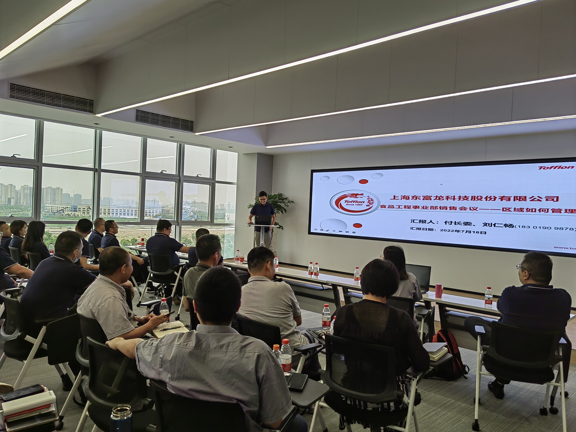 2022年7月16日,東富龍食品工程事業部在江蘇東臺順利召開2022年年中營銷會議。在東富龍集團副總裁鄭效友的統籌安排下,食品工程事業部總經理虞豐結攜東富龍輝河、東富龍智能包裝以及東富龍承歡各部門經理參加了本次會議。本次會議重點對東富龍食品工程事業部2022上半年度工作進行了總結,同時對未來發展方向進行了部署與規劃。