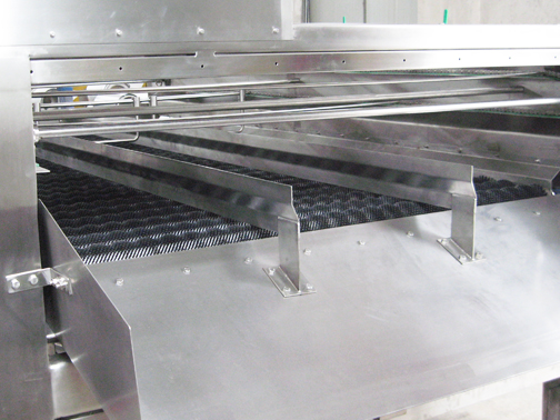 動力由減速電機(jī)提供,通過鏈輪和鏈條傳遞至毛刷棍及尼龍棍。活動門可根據(jù)需要打開,一般用于軸承和鏈條調(diào)節(jié)等設(shè)備維護(hù)。設(shè)備裝有集中潤滑裝置,方便給軸承進(jìn)行潤滑。