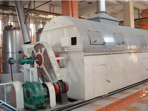 蒸汽首先加熱干燥管,物料進入殼體后,電機帶支干燥管轉動,同時將物料進行翻炒、推送,濕的蒸汽則由排氣風機送到室外。