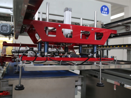 該設備主要用于對食品飲料行業、化工行業中各類瓶罐箱包進行裝入或取出周轉箱。碼垛機自動運行分為自動進箱、轉箱、分排、成堆、移堆、提堆、進托、下堆、出垛等步驟。