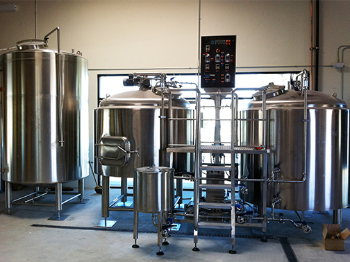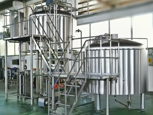 該系統主要由糖化鍋、煮沸鍋、沉淀槽、離心泵、換熱器、控制柜組成。主要工作流程為:粉碎好的麥芽輸送到糖化鍋同時加熱水進行糖化,糖化后進入煮沸鍋煮沸60-90分鐘后通過離心泵進入換熱器進入到后道發酵系統。